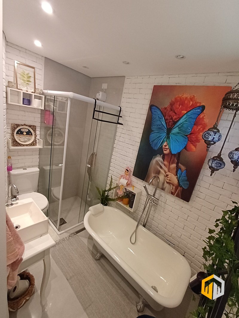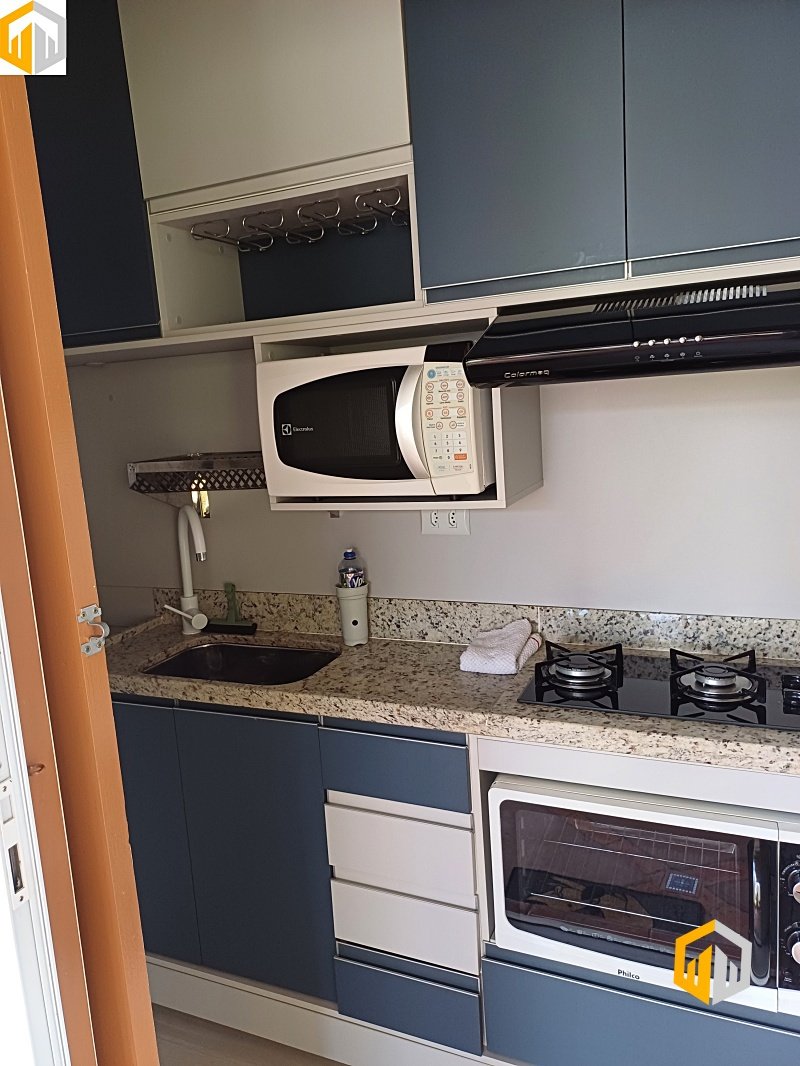 Imóvel possui 02 dormitórios com armários embutidos, TV e sacada, sala 02 ambientes com ar condicionado, cozinha planejada, 02 banheiros, sendo 01 com banheira, área de serviço e área gourmet Área Útil = 86m²